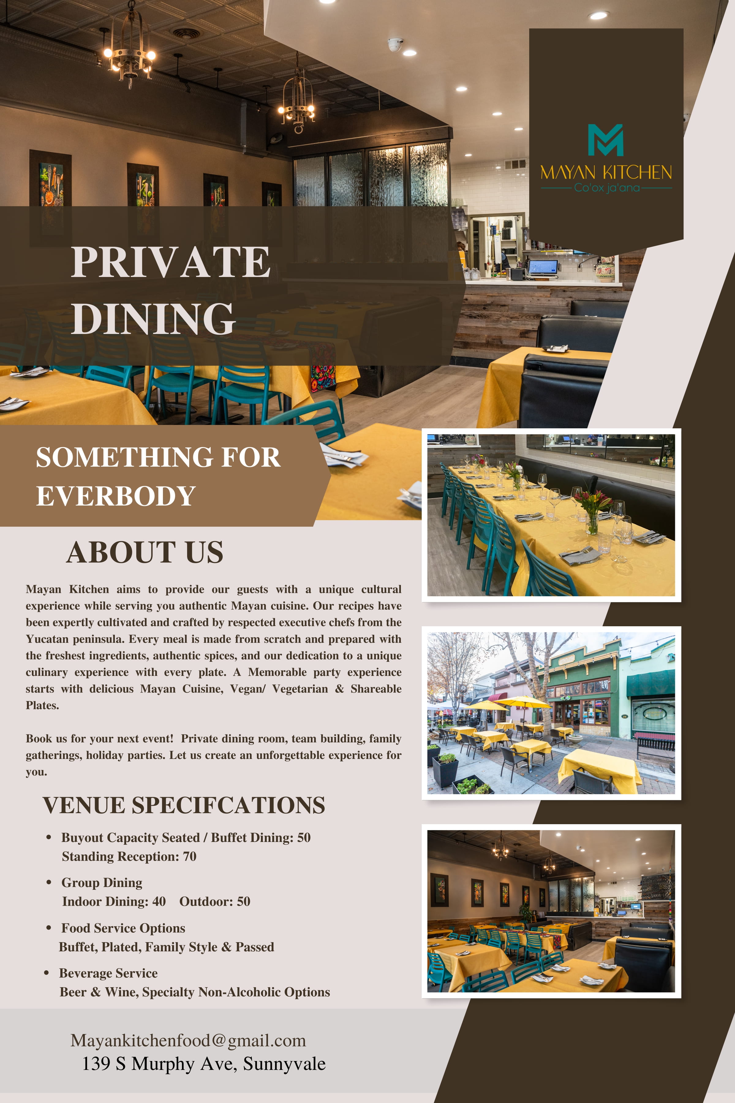 A four-hour full buyout is required, with pricing based on the day of the week and event time. The maximum seated capacity is 48 guests, either on the patio or inside the dining room.